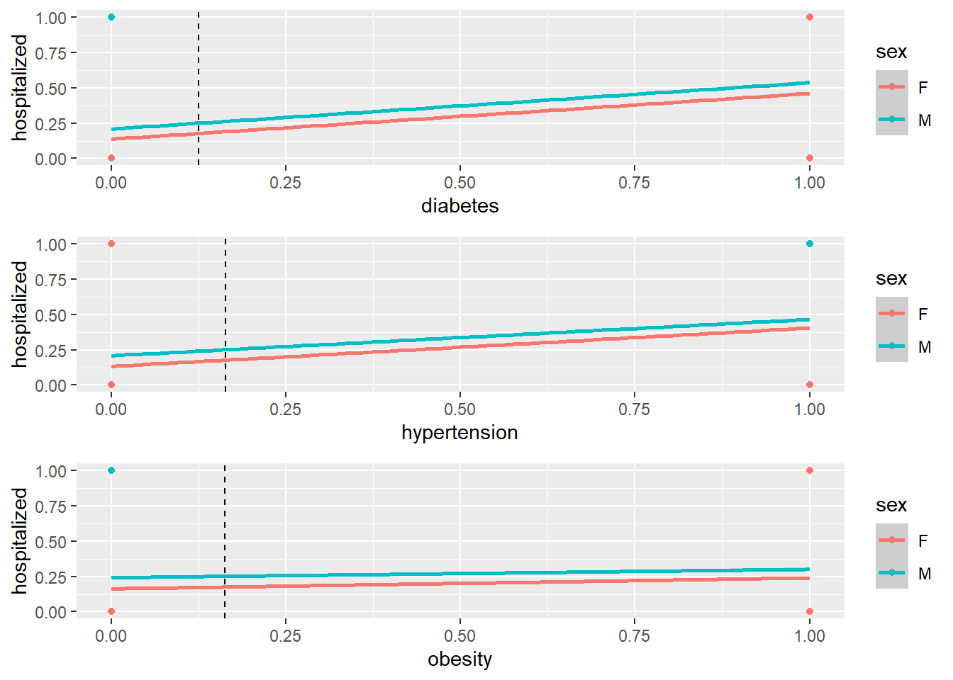 The LASSO indicates that only obesity does not help with improving the model’s predictions.